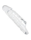 Suave y transparente potenciador para el pene con una correa de sujeción y está salpicada con nodos internos de agarre. La forma fálica añade al instante circunferencia y longitud, con paredes gruesas y una punta sólida. El material es elastico, pero firme, y es libre de ftalatos.